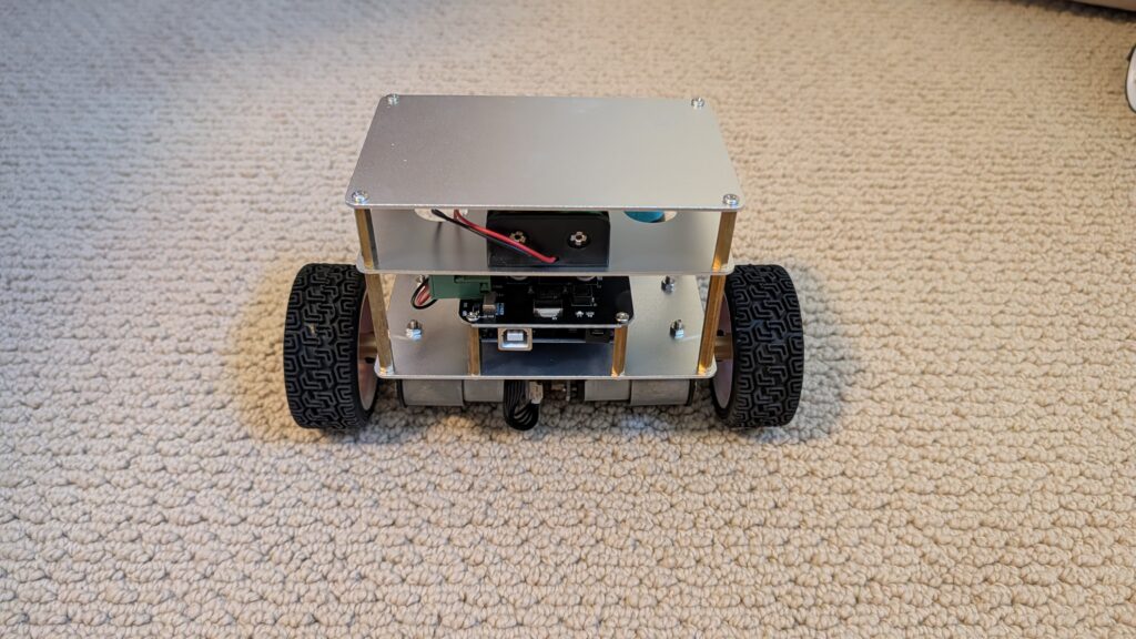 You’ll notice a two-barrel sensor at the front of the car. That’s a Lidar-Lite range sensor, which I’ll eventually use for obstacle avoidance