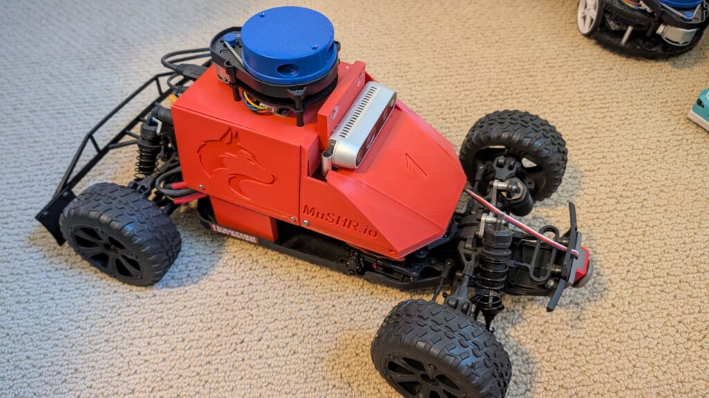 This is Musher.io, a very nice robot car with all the fixin’s from the University of Washington. It’s $1,000 worth of gear, from the Jetson Nano to the lidar, depth camera, VESC motor controller and fast and robust RC car chassis. ROS-based.