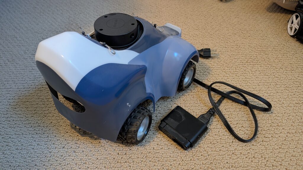 BTW, it’s not as obvious as it should be how to turn on the car. After you plug into the battery, you have to press this little button on the RC receiver, which will power on everything.