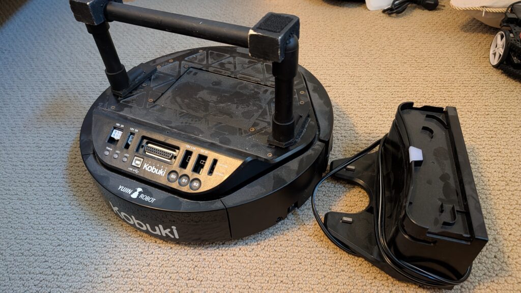 Yujin Kobuki robot platform. Like a Roomba Create, but optimized for robotics and adding sensors and actuators. Comes with recharging dock. $800 value.