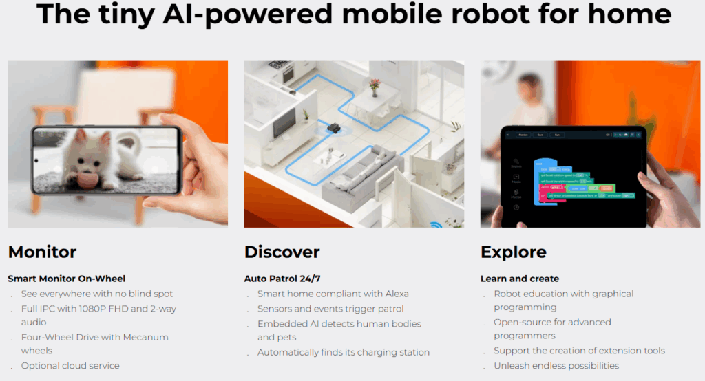 Right now it’s mostly useful as a programming platform, using Scratch in its mobile app. The built-in “AI” functions, such as follow a person or animal, don’t work very well. But on the hardware side, it’s quite impressive.